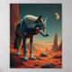 Lone Varg i Desert of mars space- En ensam varg står på ett rött ökenlandskap, dess päls en blandning av grått och vitt, med en antydan av brunt. Vargens ögon är en piercing gult, och den börjar intensivt mot ett perspektiv. Bakgrunden har en ändlös, tålig öken med höga, tunna sten-formationer stigning från sanden. En halvcirkel måne hänger i de mörk blått typerna himmel, prickad med stjärnor.