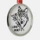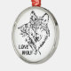 Rund förstklassig dekoration med en bild av en enskild varg (Canis lupus) och valfri text på vit text. Se hela Nature & Wildlife Ornament-samlingen i avsnittet HOME.