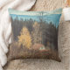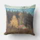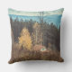 Fotografi i landskapet. Sent fall, ensam stuga i skogen, berg i bakgrunden, vilda blommor i förgrunden. Moody scenen för all natur älskare, resenärer och drömmare. Dekorativ kudde kommer att passa perfekt in i nordost, land och eko-stil.
