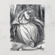 Detta vykort har en vintage svart och vit illustration av en ensam ledsen sitta ensam i skogen av en stor träd med en groda som tittar på henne.