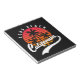 Long Beach-anteckningsblocket med en retrodesign som har ett solnedfall och handflatan träd på svart bakgrund (anpassade bg färg). I den här designen finns även ett handskrivet teckensnitt med ett svan-tecken som ska bytas ut mot snyggten. Det här anteckningsblocket är bara till dig om du är från Long Beach eller kan få som gåva eller souvenir för någon.