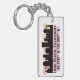 Nyckelring med Long Beach Kalifornien stads siluett med vattenfärgssplash och latitud- och longitudkoordinater