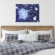 En 3D-närhet av en snöflinga mot bakgrund av fallande flingor under en mörk vinter natt himlar.