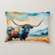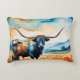 A majestic longhorn steer in a whimsical, abstract art style, blending complementary colors with fine details reminiscent of Arthur Rackham's and Paul Klee's signature techniques.
