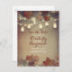 Burgunder lönnlöv, murar krukor, strängljus och rustik jute höst spara datum vykort