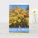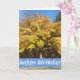 Ett vackert födelsedagskort med ett ståtligt lönnträd. Det är så gult och färggrant, det är den perfekta symbolen för höst och naturen på hösten.