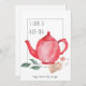Det roliga Alla hjärtans dagskort som du kan anpassa för din snygginga! Utformningen har en vattenfärgad illustration av en röd tekanna, löv och en söt valentintepåse. Formuleringen är skriven med smala typpografi och ett handskrivet stil-skript. Det står "I kärlek a hett-tea" och du kan lägga till ditt personlig-meddelande.