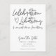 Gästerna kan inte motstå leende när de får den här typen av meddelande spara postkortet i posten. Det är det perfekta sättet att låta dem veta att din bröllop handlar om firande, underbara företag och de oförglömliga, komiska dansformationerna. På kortets framsida står "Firande, libationer och komiska dansformationer" och anpassas med dina bröllop-detaljer på kortets framsida och baksida.
