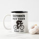 Cyklist Pension Mugg - Roligt och Anpassade! Fira pensionärens nästa äventyr med detta cyklingtematiska mugg! Designad med frasen "Indraget inte trött" är en lekfull nod att vara aktiv efter pension. Anpassa den med pensionärens namn och år och förvandla den här moderna, visuella gåvan till en keepsaké som de kommer att uppskatta. Den eleganta utformningen och det moderna serif typsnitt gör det till en snyggt som ändå är praktisk komplementär till deras rider. Perfekt för gäster och organisatörer från pension party - anpassa och beställ dina nu!