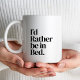 Njut av en liten slogan "Jag vill hellre vara i sängen" på den här contemporaryn, svart och vitt kaffe mugg, med utskrift på båda sidor. Mugg finns i en kapacitet på 15 uns med ett alternativ för en 11 uns storlek och är bekvämt för mikrovåg och diskmaskin säker.