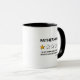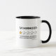 Lustigt pappa mugg med ord som faderskap, med en av fem stjärnor, en dålig recension som säger "sömnlös, inga pengar, skulle inte rekommendera det" och deras namn.