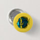 Knappen för färsk fisk med en digital grafik som skildrar en rolig tropisk angelfisk med långa ögonfransar i vackert blått och gult färg.