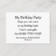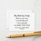 Dikt ska informera gästerna om att ni inte vill ha presenter vid er party, utan i stället ta emot pengar. Enkelt skript med svart text på vit bakgrund. Det är tanken som räknas!