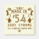Den här märkliga noveltyn Gag-presenten med fyrkantig magnet säger: "Made in ___ / 100% Cyborg / inga originaldelar lämnat." Den unika designen över backe görs i hela brunt med en kombination av reflexer/vintage blomning, en banderoll och två små robotar. Byt enkelt år till det år då mottagaren föddes. Det här är perfektens humoristiska födelsedagspresent till en gäck eller nörd som gillar robotar.