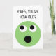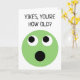 Vet nån som kommer upp där på åratal? Det här roliga födelsedagskortet är perfekt för att skicka några leenden. En illustration av en grönt som är överraskad eller chockad över ansikte i ett modernt, handritat stil. Budskapet på framsidan och insidan av detta födelsedagskort är redot att vara personlig med ditt eget ordspråk eller att det kan lämnas som det är. På framsidan står "YIKES, DU ÄR HUR GAMN?" och det inre meddelandet lyder: "DET KAN INTE VARA SANT! GRATTIS PÅ FÖDELSEDAGEN!" Denna grönt förvånade ansikte eller emoji ansikte är perfekt för att skicka jakt på födelsedagar eller tillfälle.