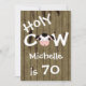 Personlig Humous Heliga Cow 70:e Födelsedagsfest inbjudan på Barn Wood Background för manar and Women. *