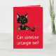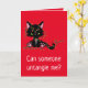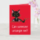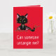 Ett lustigt julkort, det här är en svart katt som trasslas in i ljus. Med en röd bakgrund lyder framsidan "Kan någon frigöra mig?" Insidan av kortet har "God jul" med utmärkt teckensnitt. Anpassa din i dag! Bild skapat av: AMBillustrations http://www.etsy.com/shop/AMBillustrations/