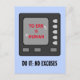 Ett vykort för roligt med en bildtext för alla som utbildar sig. Bilden är en representation av skärm på ett maskin inomhus som roterar med texten "TO ERRg IS inHUMAN" i rött. Den medföljande texten är "GÖR DET: NO EXCUSES", eller så kan den redigeras för din egen text eller till exempel för en namn.