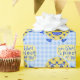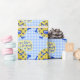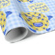 Denna humoristiska papper är perfekt för Thanksgiving eller tillfälle som innefattar paj för dessert. Det visar en arg tecknad blåbär paj som frågar: "Vill du ha en biet av mig?" Bakgrunden är ljusblå gingham. Konstruktionsplattor tvärs över papper innerförpackning.