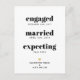 Ett vykort för meddelande om tidslinje för gravid av modern fetstil med ett alternativ för att lägga till ett foto på baksidan. Anpassa genom att ersätta exempeltexten med dina egna detaljer.