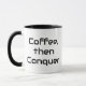 Erövra, keramisk Mugg med inspirerande citat - Gift Idea | Unik kaffe Mugg. Är du eller någon du känner till en arbetsohollös eller lat, back to school hela natten eller bara kärlek för att vara upp och inte får mycket vila? Det här inspirations- och motiveringsbudskapet för kaffe mugg kan beskrivas på lämpligt sätt. personlig använda eller presentidé. Kaffe och därefter konquer Pun Funny Coffee Mugg. Skaffa din inspirerande, motiverade mugg med en kaffepunge, "kaffe erövra"-snopp nu!