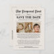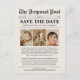 Vi presenterar vårt fantastiska, unika nyhetsblad Foto Kids Bröllop-vykort Spara datumet! Den här nyfikna och charmerande designen för med sig en liten nostalgi för barndomen till ert uttalande i bröllop. Med ett lekfullt foto av paret lycklig som barn, tillsammans med sexiga rubriker och kreativ som påminner om en tidning, är det säkert att du får ett leende till dina gästers ansikte. Anpassa den med dina viktigaste uppgifter och låt dina gäster veta att spara datumet för ett bröllop firande fyllt med skratt, kärlek och oförglömliga minnen. Få redo att sprida glädje och förväntan med den här roligten och spara vykortet för datum!