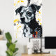 Gråa och vit handfull Hund. Bakgrunden är vit med gult grått och röda stänk. Underbara biet för vem som helst, eller en kennel- eller veterinärklinik.