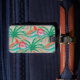 Aquablåttvågar av hav omger den rosa flamingoen under de gröna palmträden på den sandiga stranden i denna hållbara Burlap som naturligt trasatyg avbildar. Detta tropiska palmträdmönster är ett mycket färgrikt sommartryck och har en chunky fauxstruktur.