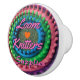 Spruce upp ditt Loom Knitting Craft-utrymme med de här keramiska knoppen. De är vita knoppar med en bild av färgstarka runda omslag. Ange en låda eller ett skåp för dina rumsstickande tillbehör.