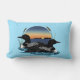 Två looner vid sjö med solnedgång och kattungar bakom dem i en blå bakgrund