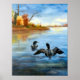 Från Brenda Thours ursprungliga oljemålning av två vackra svarta och vita looner, varav en är på väg att förlora sin vingar-upphovsrätt genom Brenda Thour 2004.