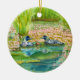 Den fuzzy Brown baby loon-simman mellan hans älskande föräldrar. Nästan osynlig för öga, baby-loon undersöker de blommande vatten-växterna. Pamela Hallock målade ur 2019 års samling av georgiska Bay Watercolor.