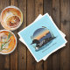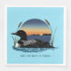 En loon på sjö med solnedgång och kattungar i en blå bakgrund