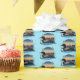 En lår på sjö med solnedgång och kattel i en blå bakgrund
