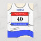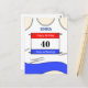 Anpassningsbar vit löparväst postkort, för födelsedagsönskningar, lycka till eller bara för att registrera en tid som uppnåtts vid ett löp- eller friidrottsevenemang.