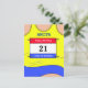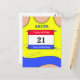 Anpassningsbar gul löparväst vykort, för födelsedagsönskningar, lycka till eller bara för att registrera en tid som uppnåtts vid en löp- eller friidrottstävling eller -träff.
