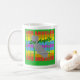 The coffee mug design saying "The City of Angels" and "Los Angeles" is colored green. It makes it ideal for either coffee or tea in the mornings. It is microwave and dishwasher safe.