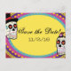 Mexikansk socker skalle bröllopspar - detta Spara datum-kort matchar alla Los Novios-inbjudningar och tryck. Det finns massor av andra produkter för ditt Dia de los Muertos-bröllop eller festtema i denna designsamling! Bra present till Alla hjärtans dag eller årsdag!