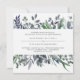 Den här moderna botaniska bröllopsinbjudan har vattenfärgsfärgade löv i trendigets skuggor av grönt, blått och grått för ett snyggt som ser ut som minimalistiskt och rustiskt.