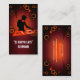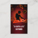Denna DJ-visitkort presenterar ett rikt rött, och burgundy färgbakgrund med rött strålar spiken, dj silhouette blandar upp låter på ett vändbord.
