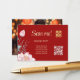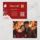 Kortet med fyrkantig kod har en vattenfärgsmålad lotus-blomma och en lyckosymbol för dubblan i guld på en röd bakgrund. Sök efter information på QR-kortet för mig om du vill ha mer information på bröllop webbplats och osa online. Lägg till fotot på baksidan.