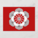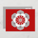 Det japanska mandala-vykortet som beskriver en stiliserad lotus-blomma, symboliserar renhet, uppvaknande av andlig och trohet - blomma i silver grått / grått, rött och vitt, på en mörk kinesisk röd bakgrund