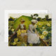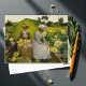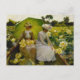 vykort inspirerat av Charles Curran Lotus Lilies-teckningar, som visar två kvinnor i en båt med ett paraply, omgiven av vibranta lotus lilies.