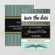 Stilrena och eleganta, dessa Save the Date-kort har feta ränder, en lotusrulle och simulerad guldfolie. Baksidan är randig och har plats för ytterligare information, som plats och webbplats. Det finns gott om utrymme för att lägga till foton för ytterligare anpassning. Det finns många kortstorlekar, former och papperstyper att välja mellan.