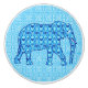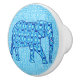 Knopp i ett digitalt grafiskt för blandat massmedia av en elefant mot en arabesque belagd med tegel bakgrund - turkos, mörka indigoblå blått och vitlotusblommar blommar mönster mot en aquabakgrund