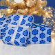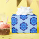 Den japanska mandaladesignen som slår in papper, som visar, en stylized lotusblommablomma som symboliserar renhet, det andliga uppvaknandet och trofastheten - blomma i djup indigoblått, och mjukt skuggar av blått på en ljus himmelblåttbakgrund