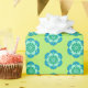 Den japanska mandaladesignen som slår in papper, som visar, en stylized lotusblommablomma som symboliserar renhet, det andliga uppvaknandet och trofastheten - blomma i mjuka himmelblått, ljus aqua och jadegrönt på en limefruktgröntbakgrund