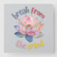 En klocka med en akvarell lotusblomma, med frasen "Bryta från slit" centrerad runt bilden. Lotusblomman, känd för sin skönhet och motståndskraft, symboliserar renhet, upplysning och andlig uppvaknande, vilket tyder på en fredlig flykt från dagliga påfrestningar.