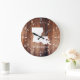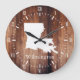 Rustiska lingträdsbalkar skriver ut klocka med vita romerska siffror och skalmärken i timmar och minuter plus en vit lustyana silhouette och fullt namn i vitt.