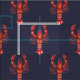 Louisiana vattenfärgCajun kräftor mönstrade tyg med en mörk marinblå kulör bakgrund.